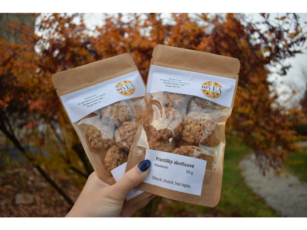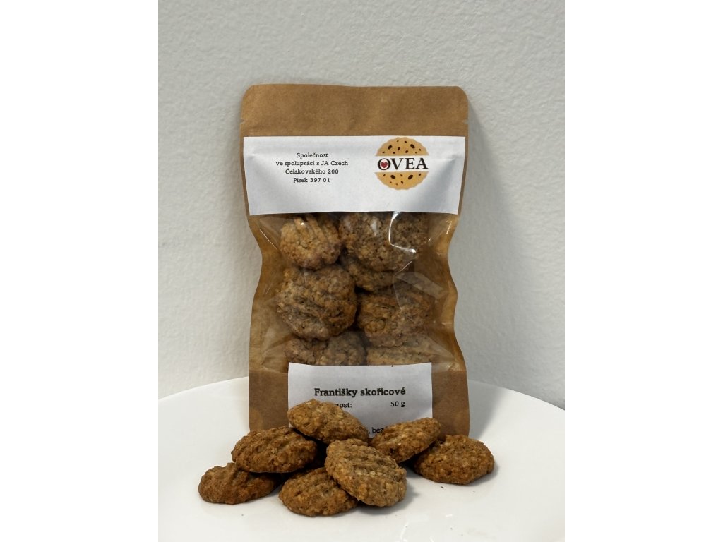 Naše Skořicové Františky voní po domově a hřejivé pohodě. Každá sušenka spojuje jemnou chuť ovsa s výraznou vůní skořice, která vykouzlí úsměv při každém soustu. Sušenky vznikají pod rukama našeho ředitele, který do nich vkládá nejen zkušenost, ale i kousek srdce. Sladká tečka pro každý den – zdravá, voňavá a křehká přesně tak, jak má být.