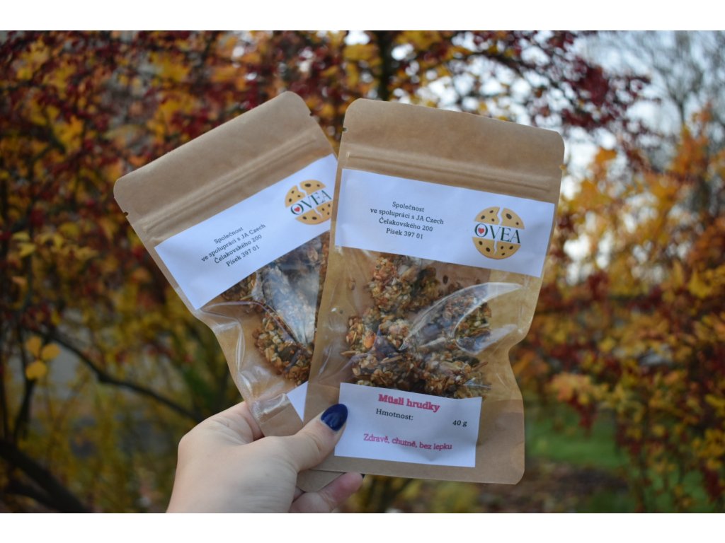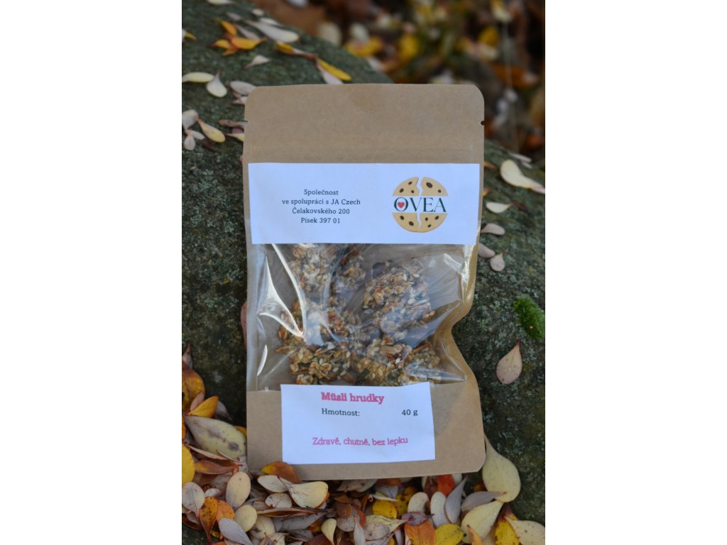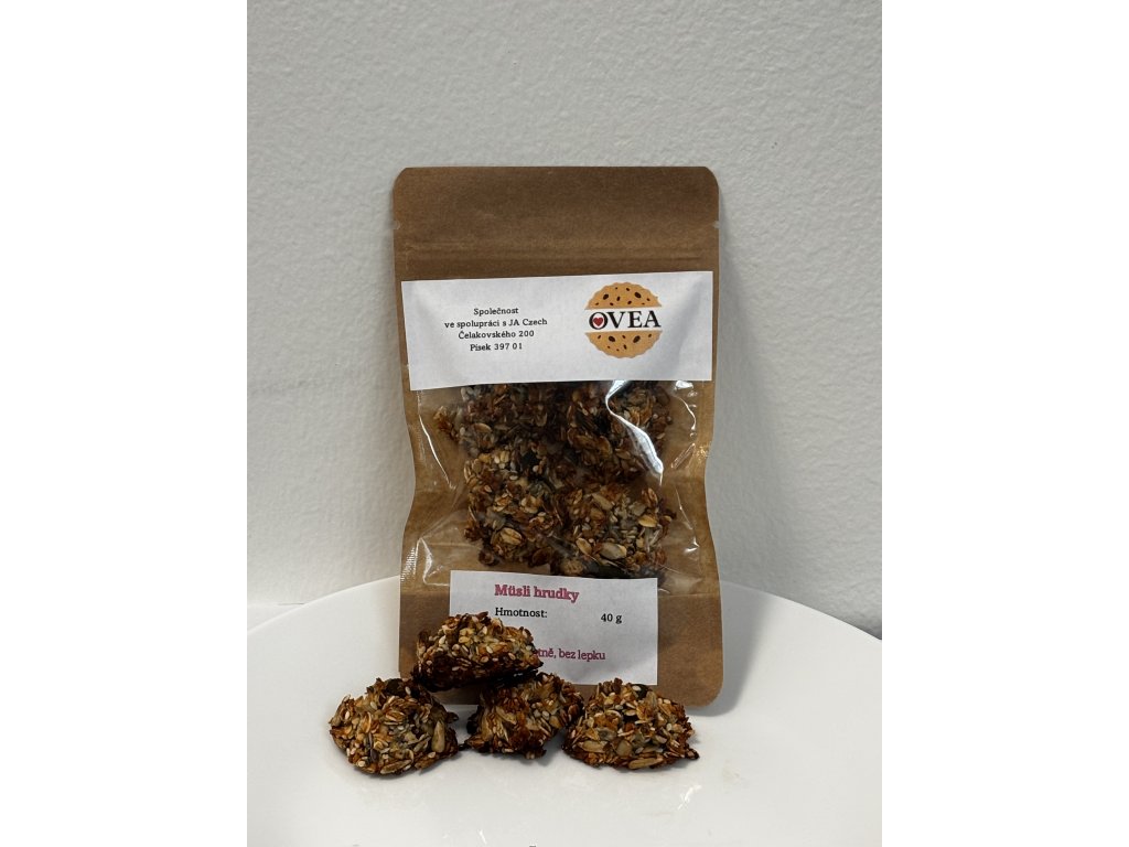 Naše Müsli hrudky jsou poctivě pečené do zlatova z ovesných vloček a několika druhů semínek, které dodávají každému soustu příjemnou křupavost a výraznou chuť. Lehce nasládlé, ideální pro všechny, kdo chtějí zdravou a chutnou svačinu nebo malou odměnu během dne. Bez lepku, zato plné vlákniny, poctivých surovin a přírodní energie – každá hrudka je kombinací jednoduchých, kvalitních ingrediencí, které zkrátka potěší.